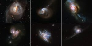 تلسکوپ فضایی ناسا و سازمان فضایی اروپا برای تبریک سال نو تصویری متشکل از ۶ برخورد کهکشانی زیبا را منتشر کرده است. هر کدام از